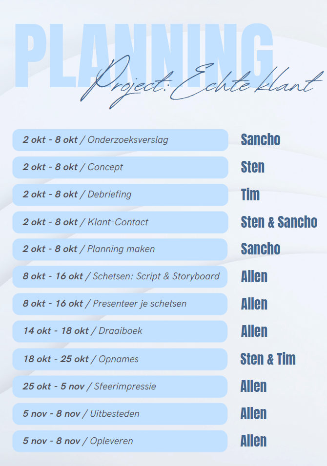 Ook was een groepsgenoot (Tim Verweij) bezig met de debriefing. Na dit alles te hebben afgerond na 2 dagen, stonden we voor op schema. Dus ik maakte de planning alvast die alles eerlijk verdeelde.