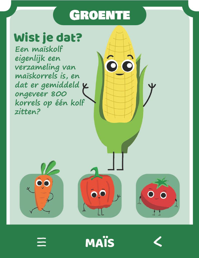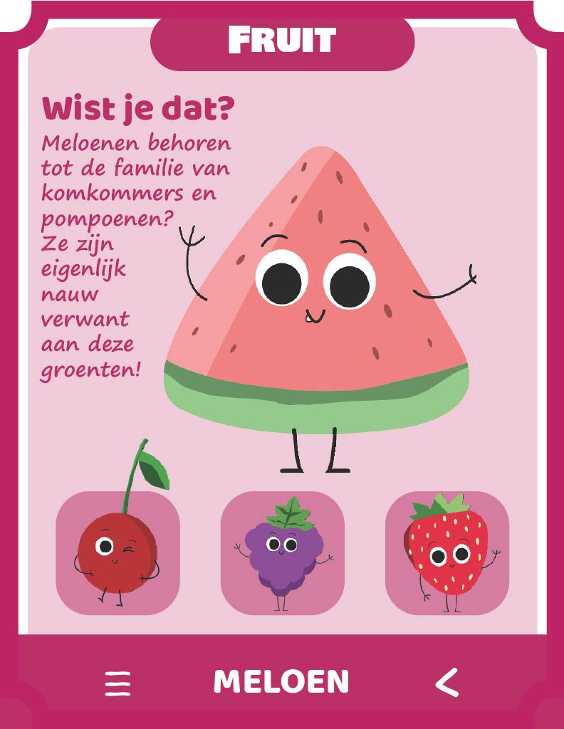 We hadden de taakverdeling zo gemaakt dat iemand de karakters maakte met Adobe Illustrator, een ander het design van de kaartjes aan de voorkant, en de ander van de achterkant. Dit zijn alle fruitkaartjes: